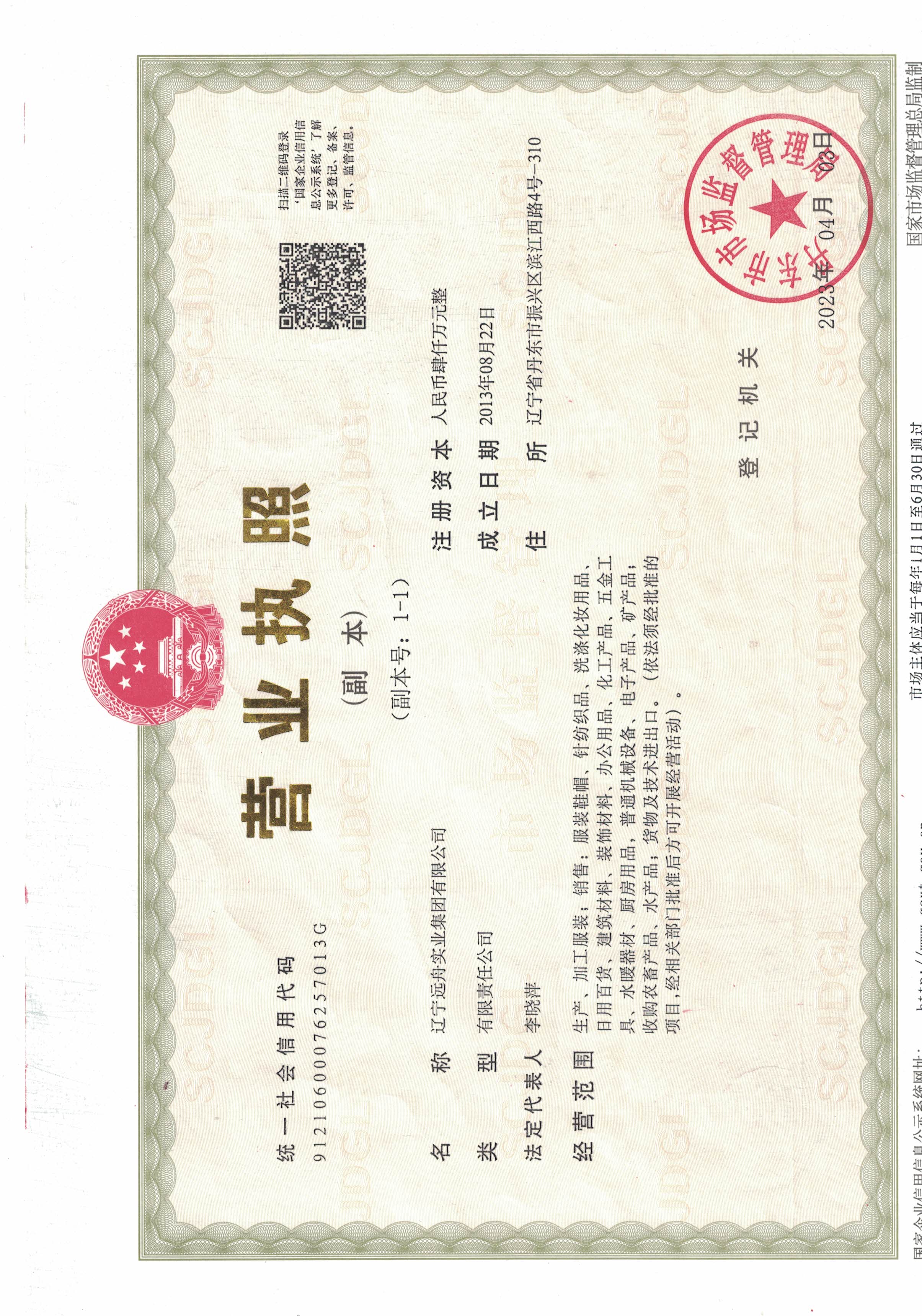 遼寧遠舟實業(yè)集團有限公司創(chuàng)立于2013年,注冊資金4000萬元,集團由丹東遠舟貿(mào)易有限公司、丹東昱豪制衣有限公司、丹東三江國際貨運代理有限公司三大核心業(yè)務(wù)為主的子公司組成。是一家集服裝加工、銷售、進出口貿(mào)易、國際貨運代理、農(nóng)產(chǎn)品種植、水產(chǎn)品養(yǎng)殖于一體的綜合性企業(yè)。公司位于丹東市振興區(qū)濱江西路柏林會都1號樓。